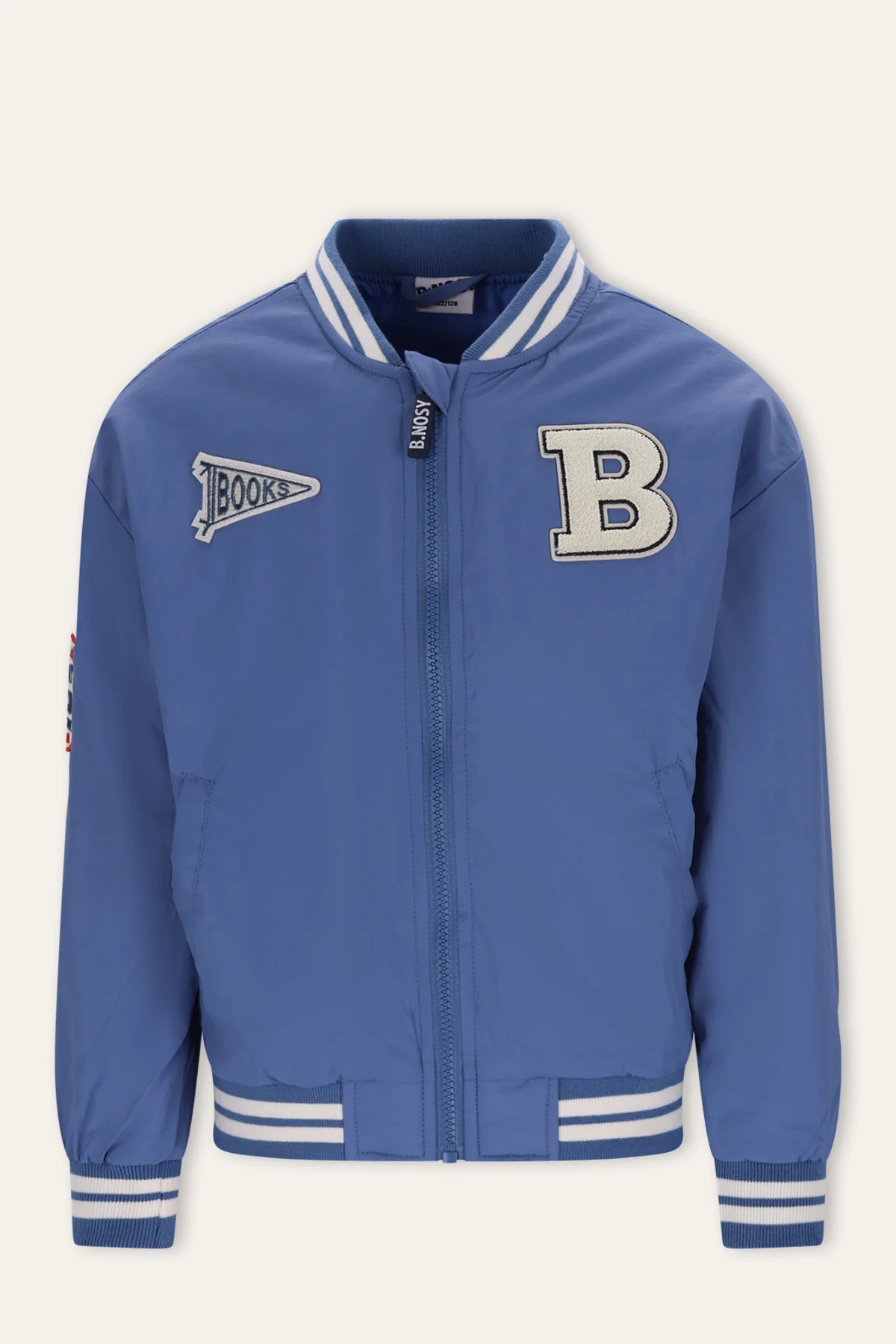 • Coole varsity look met “Books” patch en grote “B”.