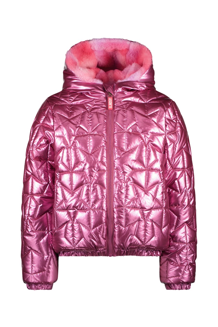 B.Nosy Jessie Jas is de perfecte winterjas voor kinderen in een opvallende roze kleur. Gemaakt van gerecycled polyester, biedt deze jas zowel stijl als comfort. Met een omkeerbare functie, kan je kiezen tussen een speels sterrenpatroon of een zachte fake fur uitstraling. Deze jas is ideaal voor het combineren met andere B.Nosy outfits, en maakt elke outfit speciaal.