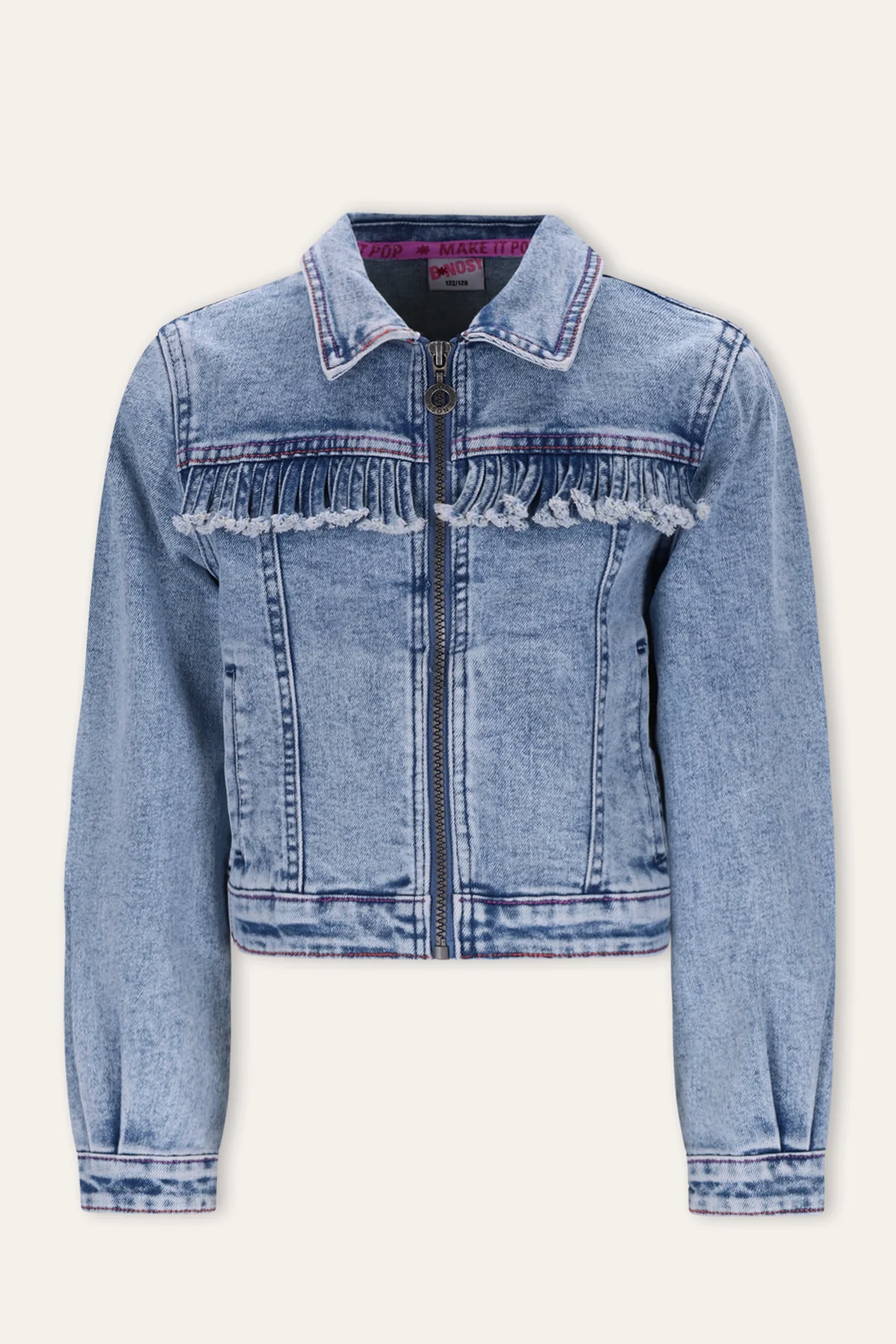 Maak je outfit compleet met dit trendy jasje! De Jane spijkerjas is gemaakt van stevige denim en heeft een leuke wassing. Dit jasje is perfect voor vrolijke avonturen en laat jouw kleine meid stralen.