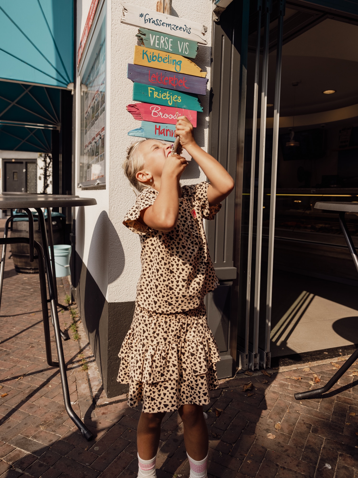 Stoere rok met alloverprint hartjes voor meisjes. Erg leuk met het bijpassende alloverprint shirt zoals te zien op de laatste foto.