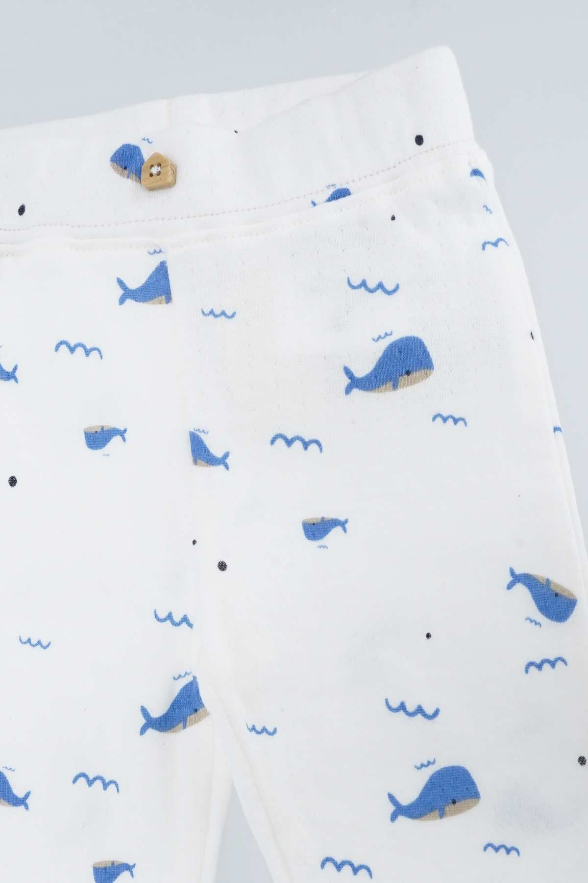 Jersey broekje met alloverprint walvisjes voor de allerkleinste wereldwondertjes. Maak het setje compleet met het sweatshirtje in bijpassende kleur, of het shirtje met alloverprint walvisjes te zien op de laatste foto’s.