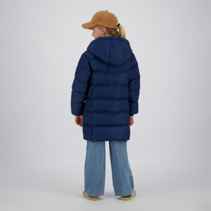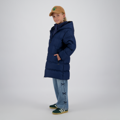 Met zijn diepe donkerblauwe kleur is deze lange winterjas een tijdloze keuze. Het 100% polyester materiaal voelt zacht aan, houdt warmte vast en is makkelijk te onderhouden. De jas heeft een klassieke snit met rits en zakken, waardoor hij veelzijdig is in gebruik. Perfect voor naar school, een wandeling of een dagje stad.